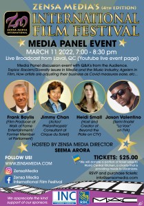 Media Panel discussion with Q & A’s with the panelists, followed by a networking party with some snacks and a cool opportunity to meet fellow artists, actors, models, Public figures and filmmakers in the biz. This is an networking event not to be missed. ****Postponed to March 11th, 2022 due to scheduling issue (online private youtube event page broadcast) for ticket holders and VIP ticket holders.